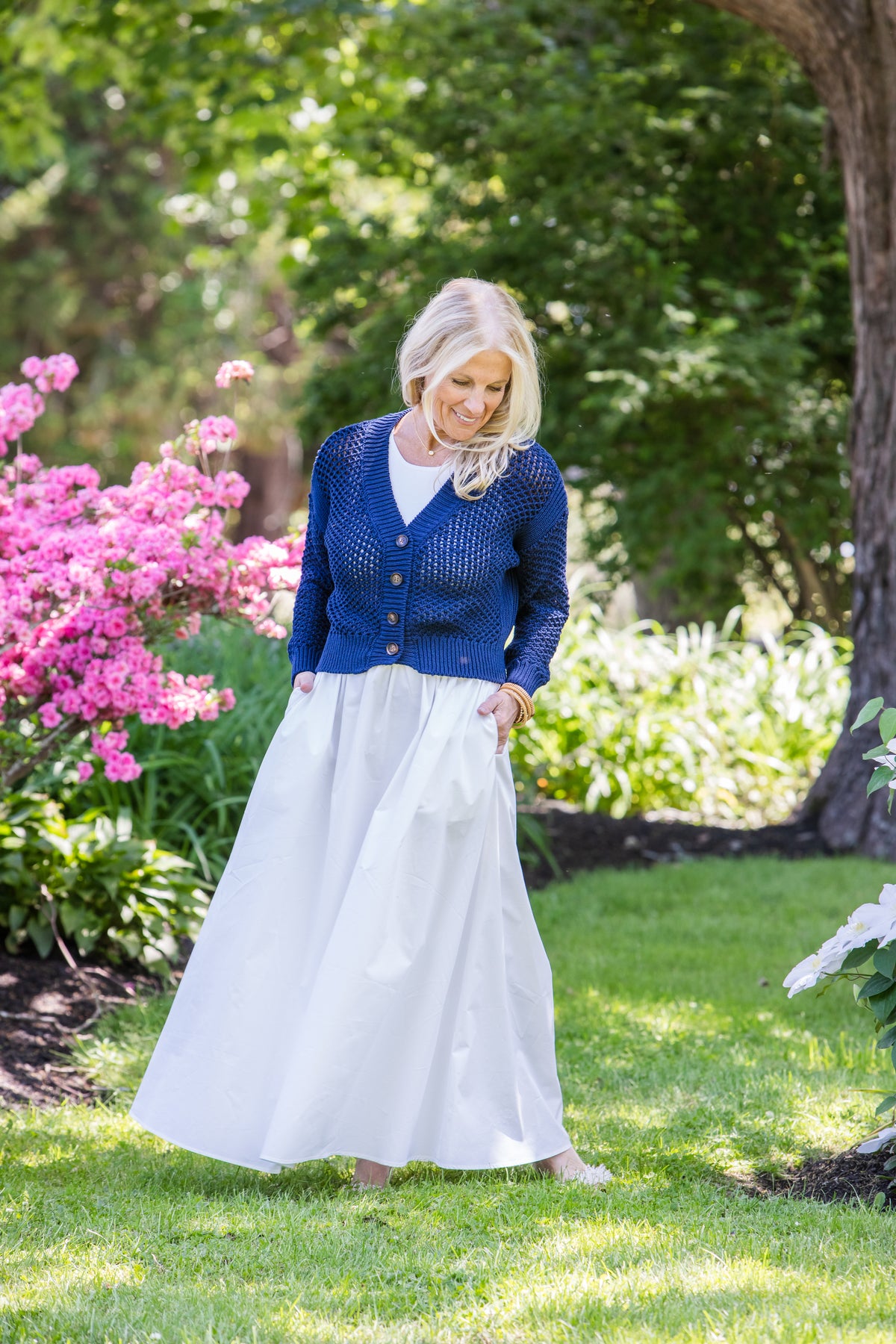 Introducing The Betty: an open-weave cardigan featuring a relaxed fit and a delicate open-weave pattern . Crafted from a soft cotton blend, it is your go to cardigan for the season.